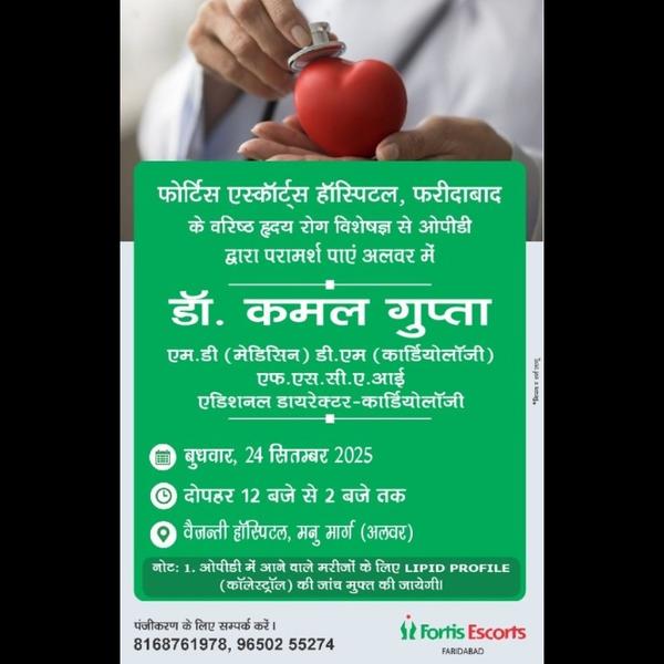 View DetailsFortis Escorts Hospital Faridabad – Health Camp & OPD Consultation Dr. Kamal Gupta